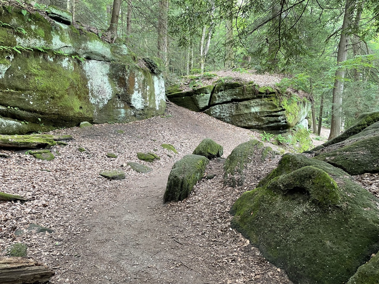 Ledges trail is the perfect moderate hike with enchanting landscape. There are small inclines and declines with a few stairs scattered throughout. This is one of those trails that takes you through the forest and your imagination goes wild. Along the way you’ll encounter large trees, moss covered rocks, a bat cave, and an overlook. We visited during the summer when the trees were in their full green making it difficult to see much over them at the overlook so maybe do this one in the other seasons when the trees are barren. Ledges trail is a 1.6 mile hike that you can do in a loop or use the cutoff to make it a bit shorter.
